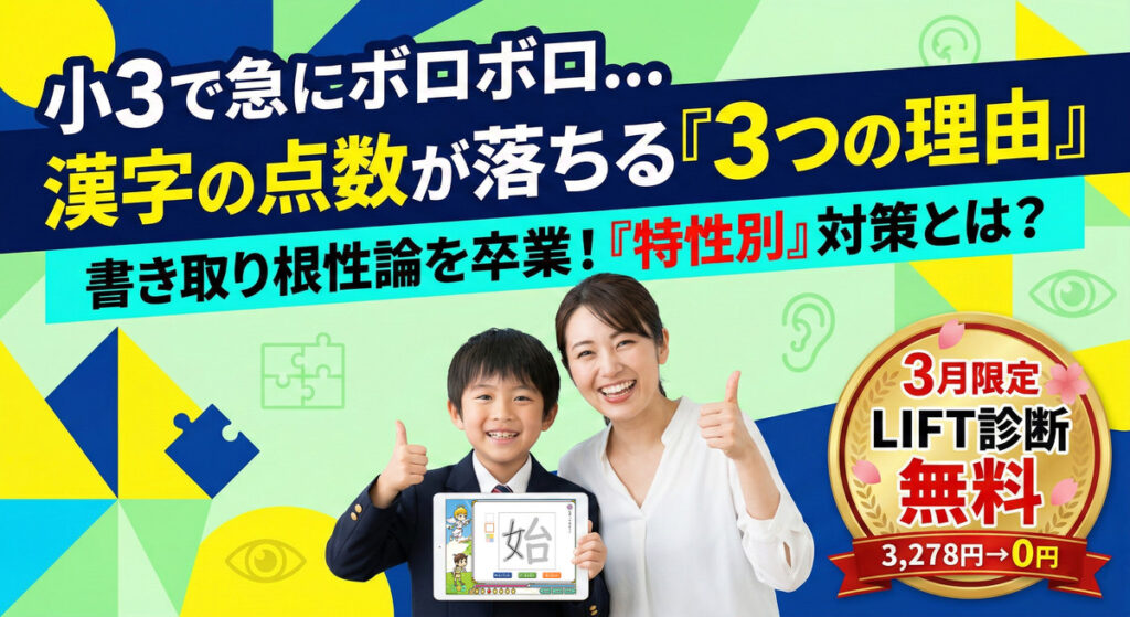 小学3年生の漢字が急に難しくなる理由3選。苦行の書き取りを卒業する『特性別』対策とは?【3月限定LIFT診断無料】