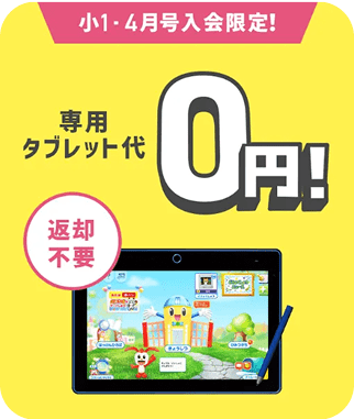 - 小1・4月号の入会・受講で専用タブレット代0円(返却不要)