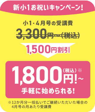 - 小1・4月号の受講費が1,500円割引