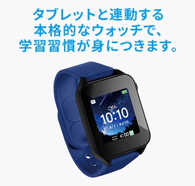 アラーム機能や、学習機能も備えた本格スマートウォッチ。タブレットと連動して便利に使えるようになります。