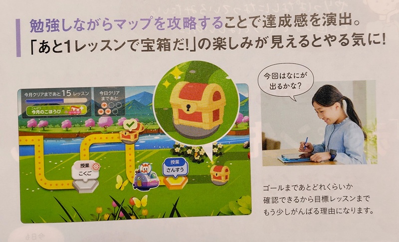 - 攻略型学習「まなびクエスト」で楽しく学ぶ意欲が続きます。