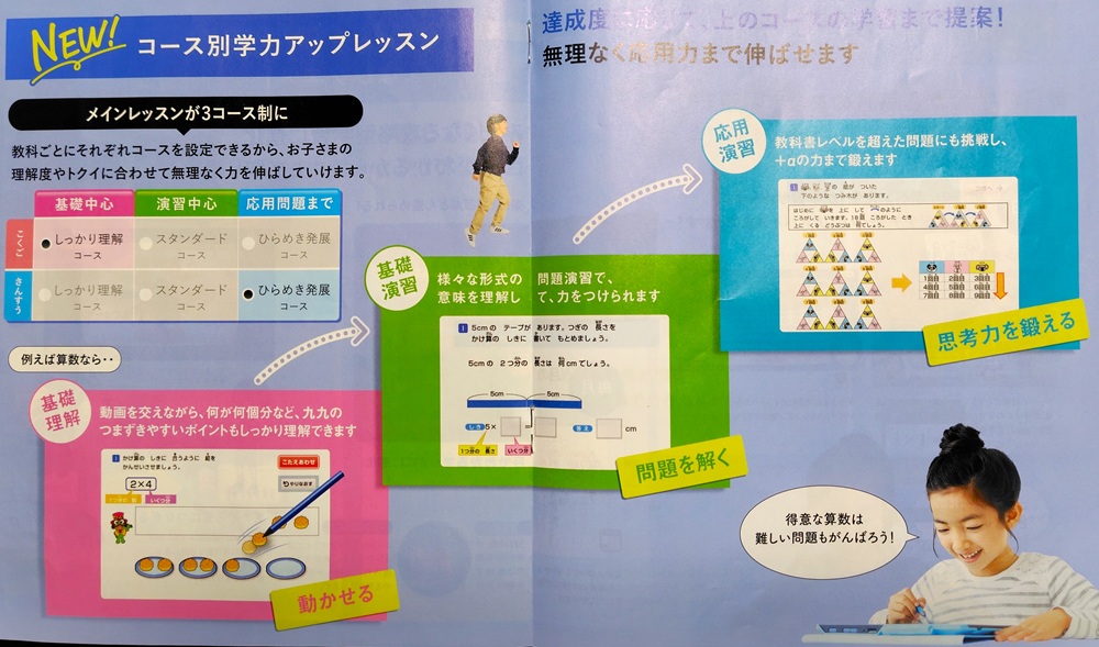 メインレッスンがこれまでの2コース制から3コース制に細分化。教科ごとによりきめ細かくお子さんに合ったレベルで難易度調整が可能になります。