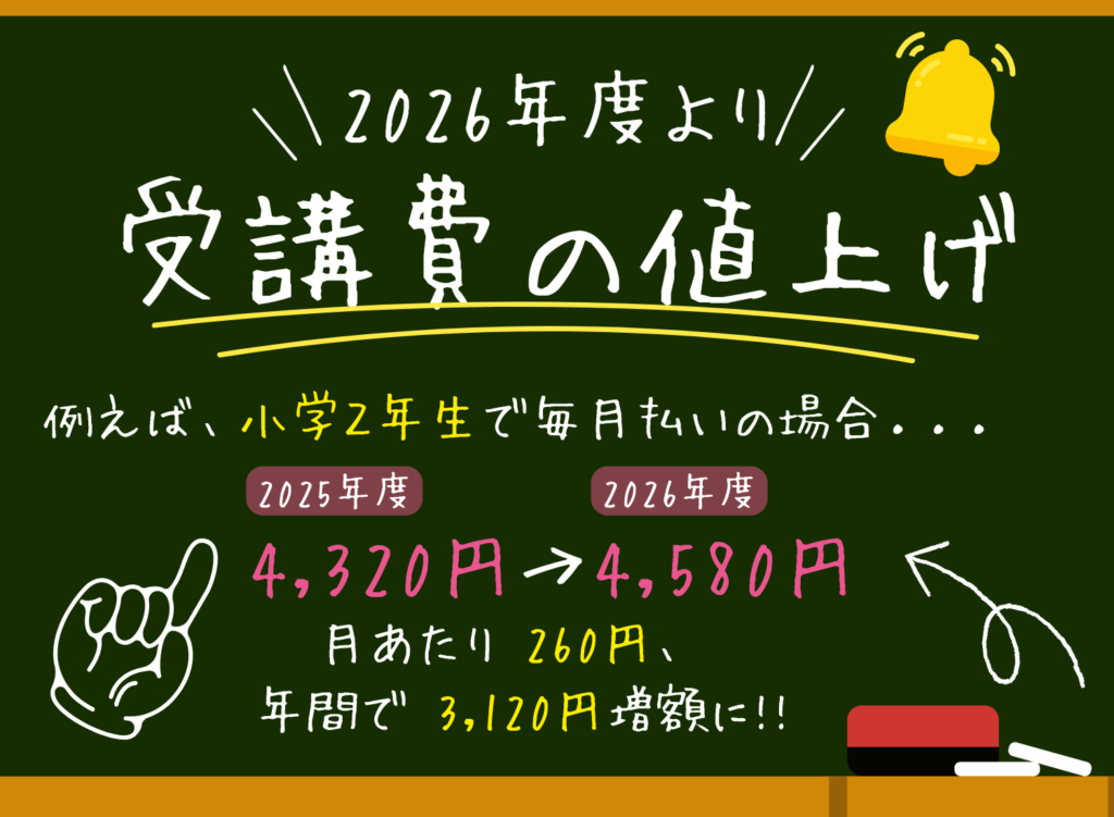 | 費用 | — | 基本受講費の値上げ。 ※特に高学年の「毎月払い」の値上げ幅が大きい。 | 許容範囲内。低学年のの値上げ幅はまだ小さい。 高学年で継続するなら「一括払い」で値上げ幅を抑えるのが賢明。 |