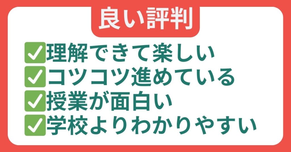 教師陣はモチベーションの引き出し方や言葉遣い、語りかけ方が上手なため、言葉がスッと頭に入ってきます。