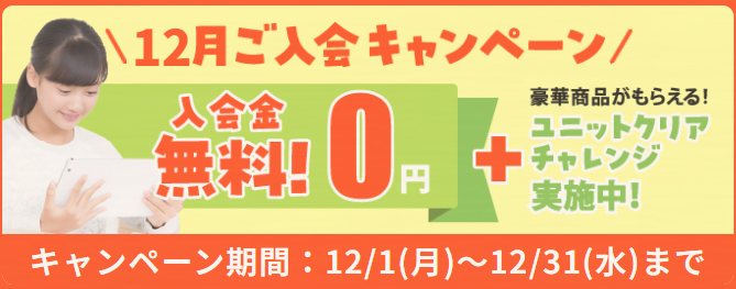 さらに!12月は入会金0円キャンペーンも実施中。Wキャンペーンでとってもお得なタイミングです。